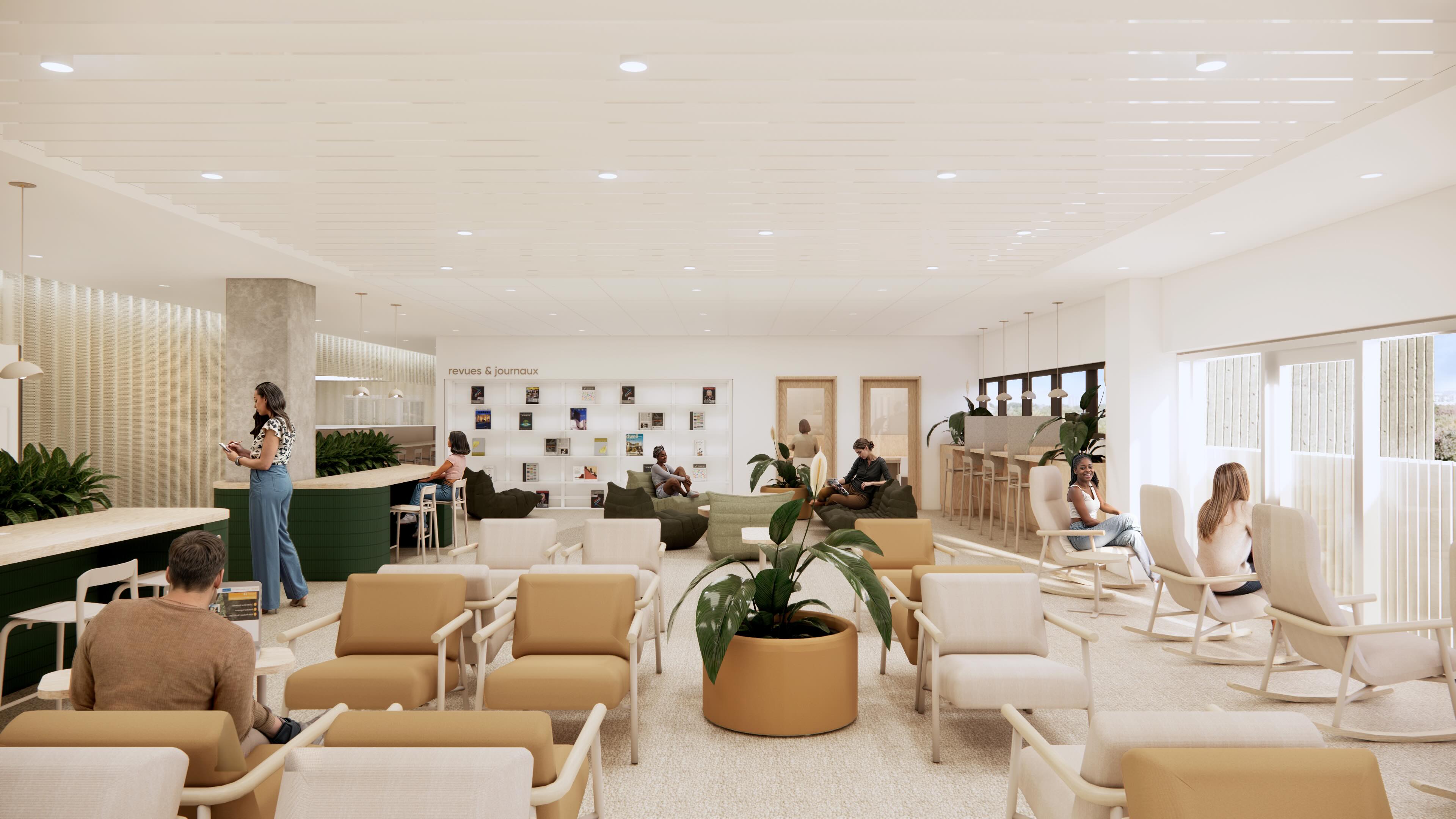 La transformation de La Bibliothèque repose sur une approche de design biophilique, qui s’inspire de la nature pour créer des espaces plus confortables, plus lumineux et plus stimulants. Cette démarche place l’humain au cœur du projet et vise le bien-être, la concentration et la réussite de la communauté étudiante.